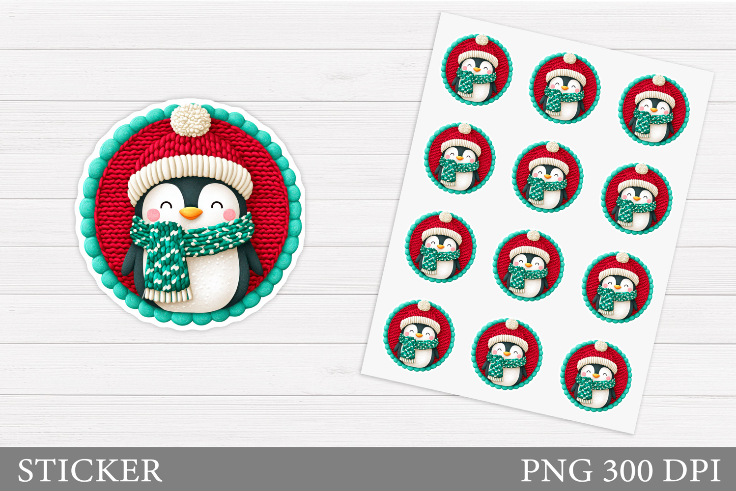 Crochet Penguin Sticker Design. Christmas Sticker Printable example image 1