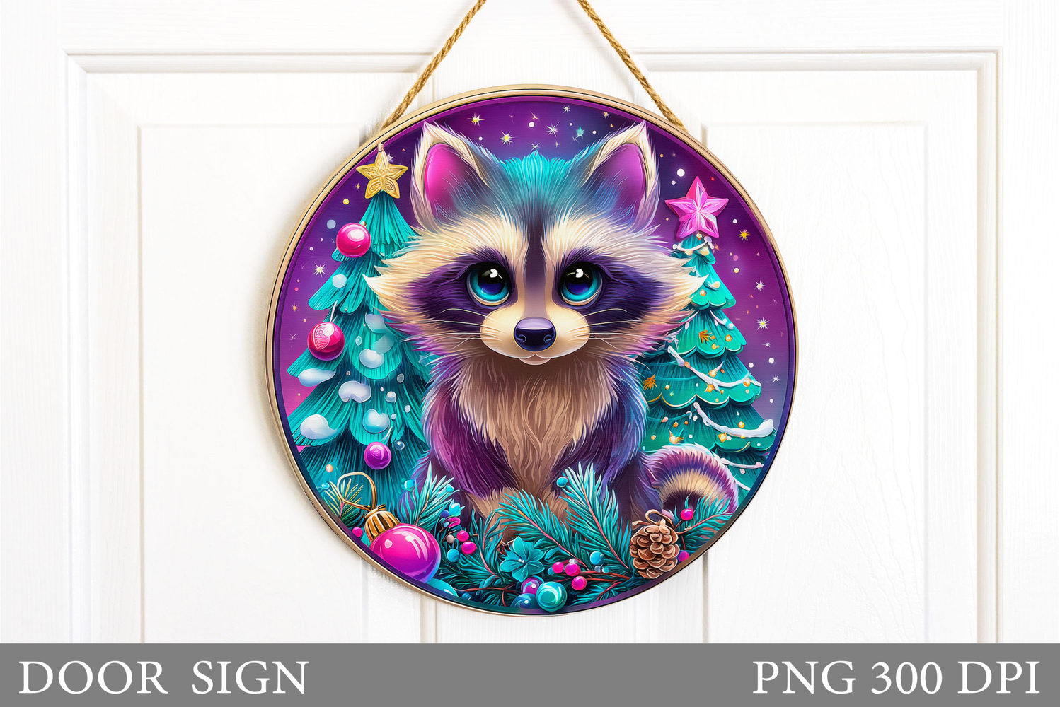Christmas Raccoon Door Sign. Christmas Door Sign Sublimation