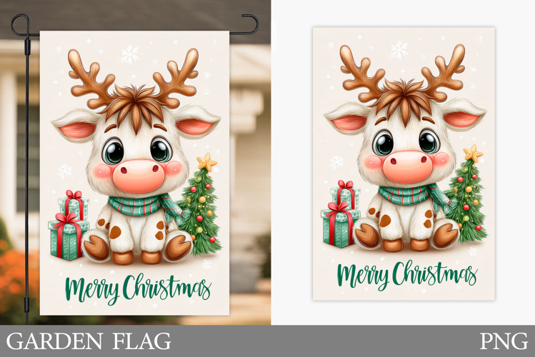 Christmas Cow Garden Flag. Christmas Garden Flag Sublimation example image 1