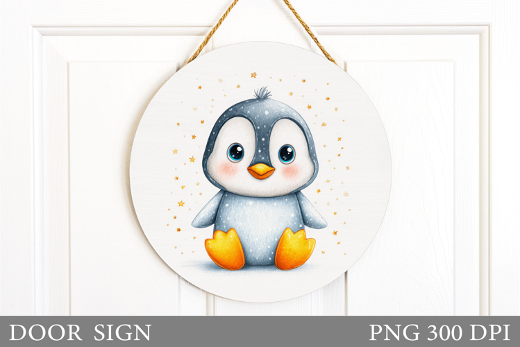 Christmas Penguin Door Sign. Christmas Door Sign Design example image 1