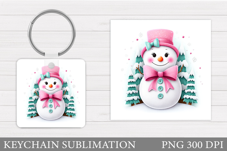 Cute Snowman Keychain Sublimation. Christmas Keychain Design