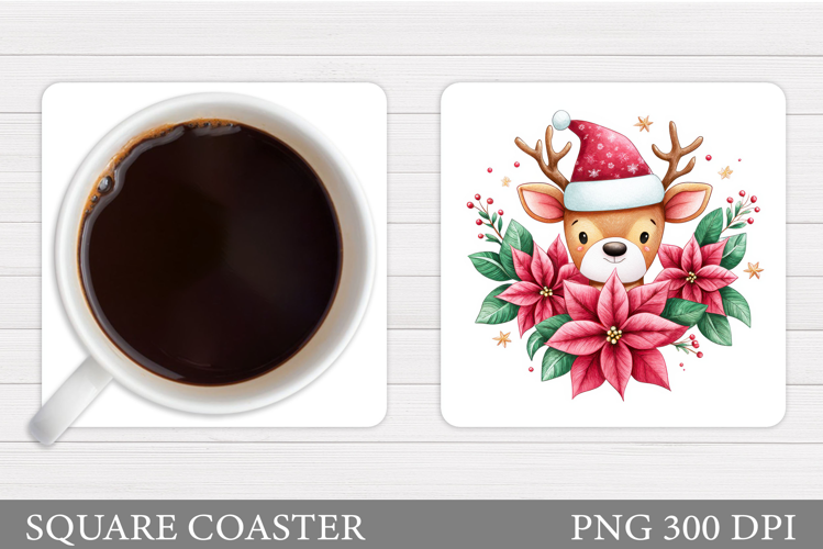 Christmas Deer Coaster Sublimation. Christmas Coaster Design example image 1