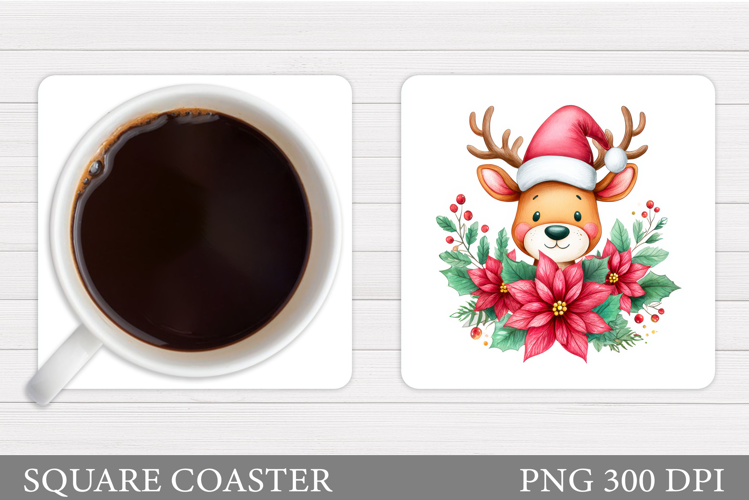 Christmas Deer Coaster Sublimation. Christmas Coaster Design example image 1