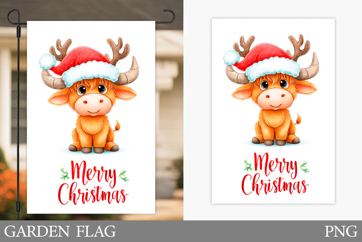 Christmas Cow Garden Flag. Christmas Garden Flag Sublimation example image 1
