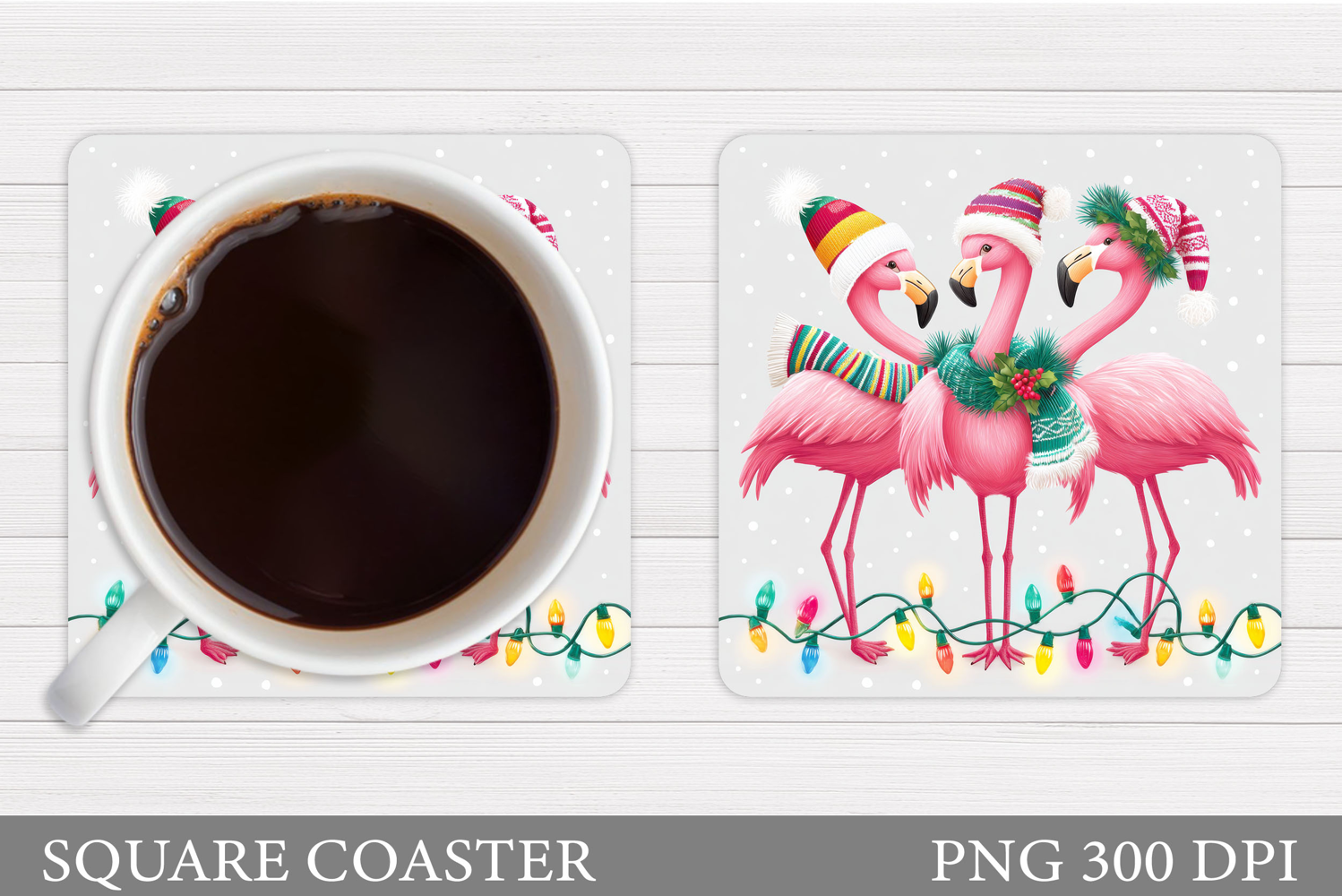 Christmas Flamingo Coaster. Christmas Coaster Design