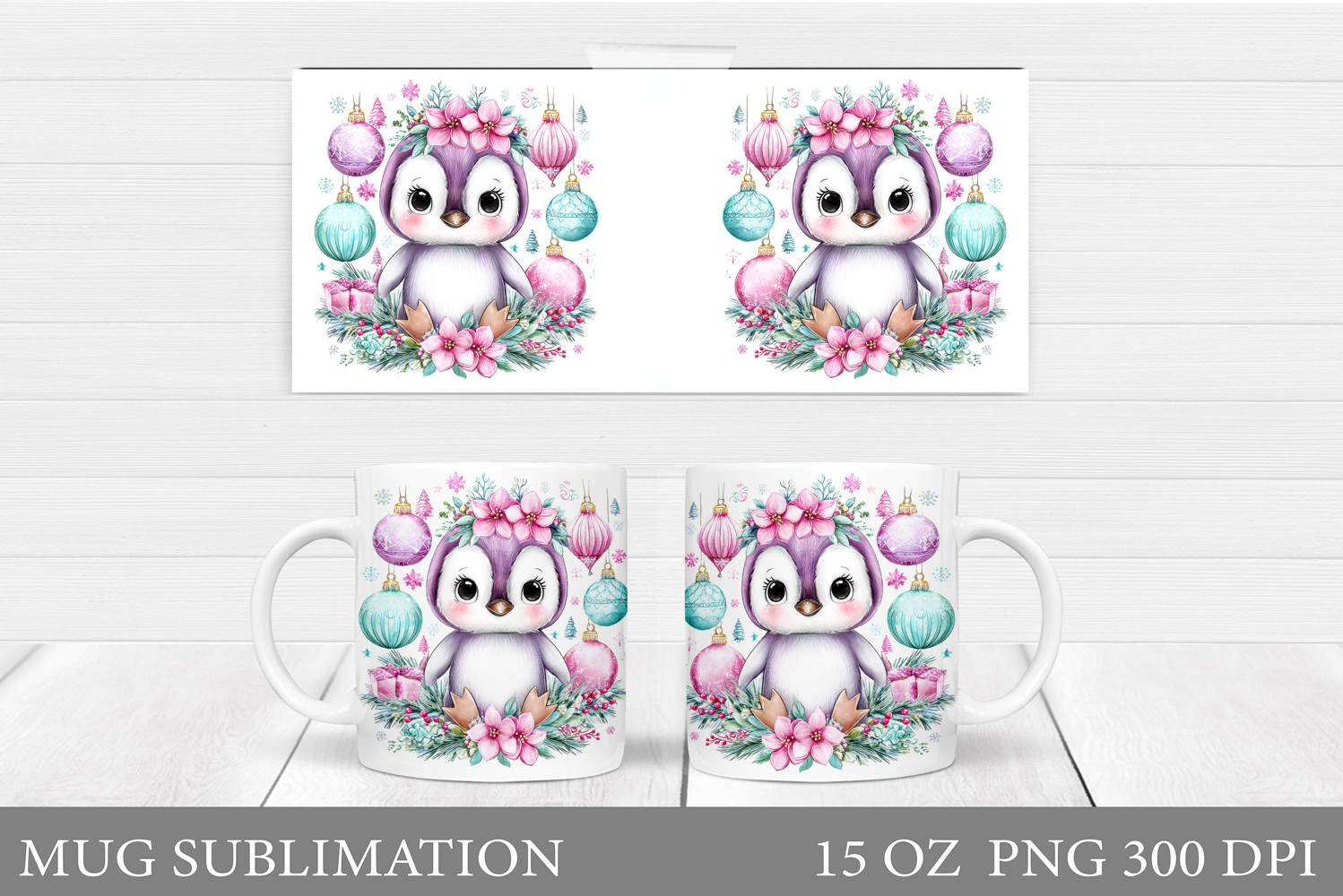 Christmas Penguin Mug Sublimation. Christmas Mug Design