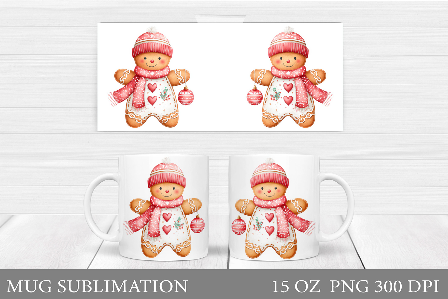 Christmas Mug Sublimation. Cute Gingerbread Mug Design