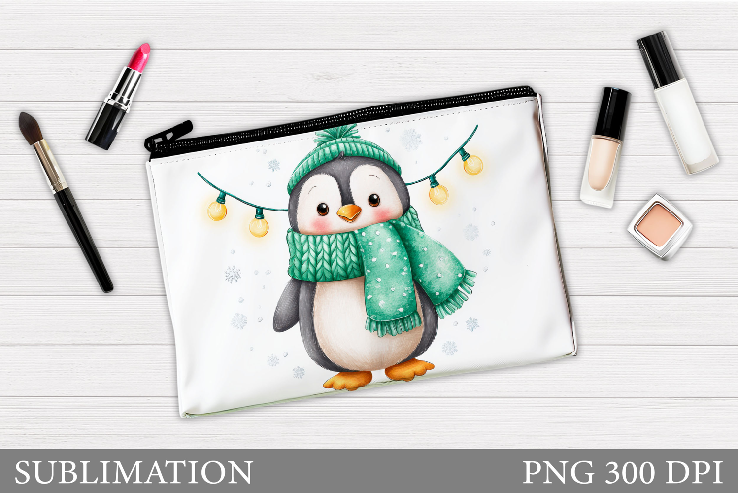 Penguin Cosmetics Bag. Christmas Makeup Bag Sublimation