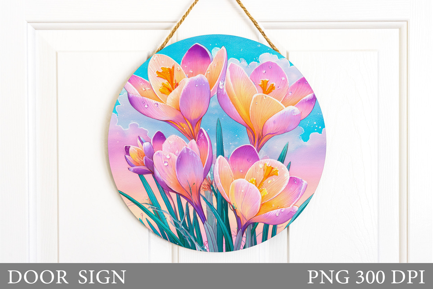 Crocus Door Sign Sublimation. Flowers Door Sign Design