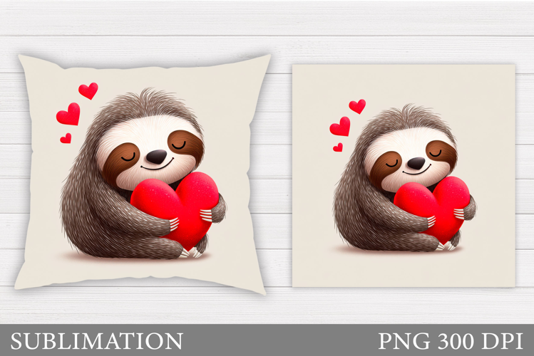 Valentines Sloth Pillow Design. Valentine Pillow Sublimation example image 1