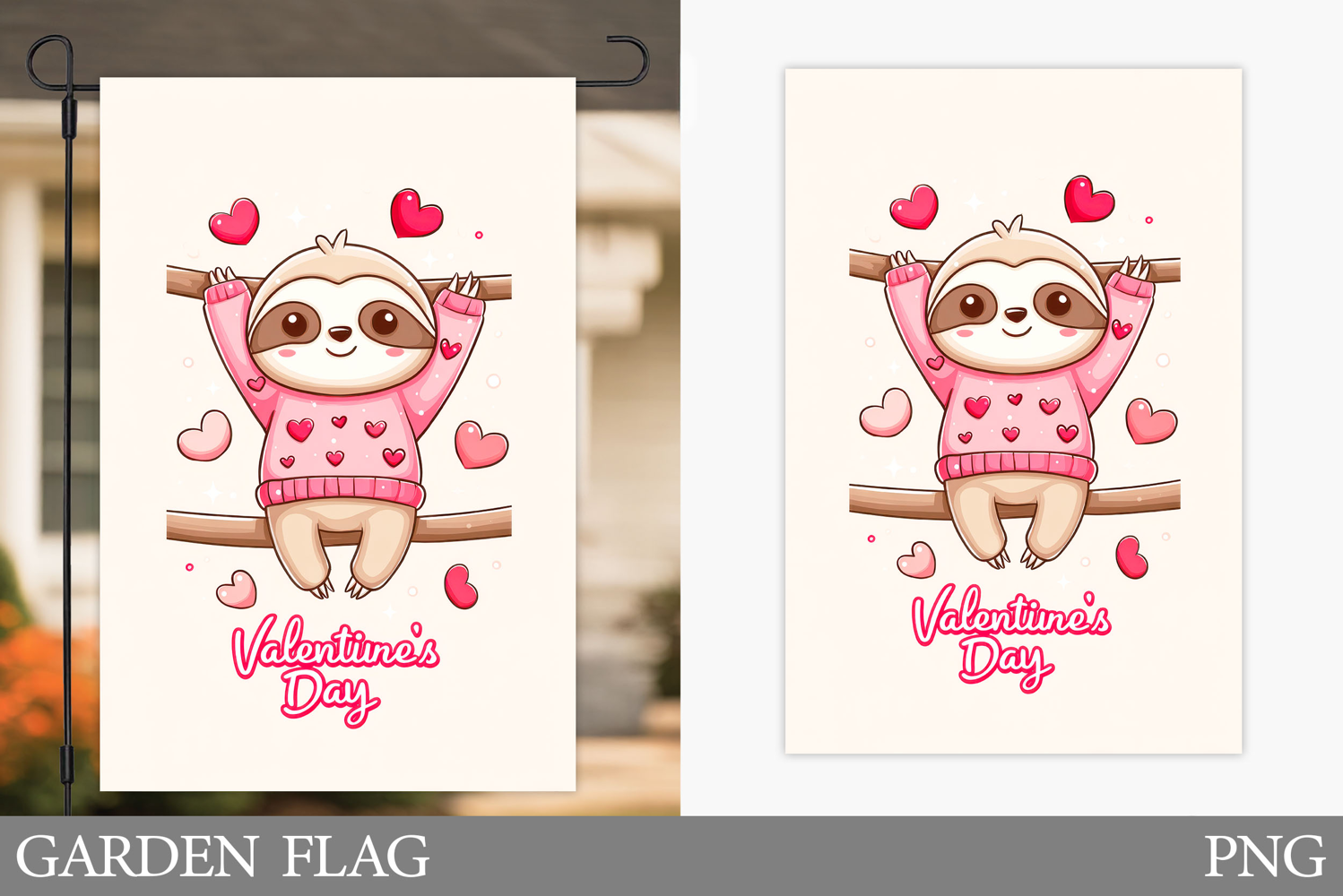 Valentines Sloth Garden Flag. Valentines Garden Flag Design example image 1