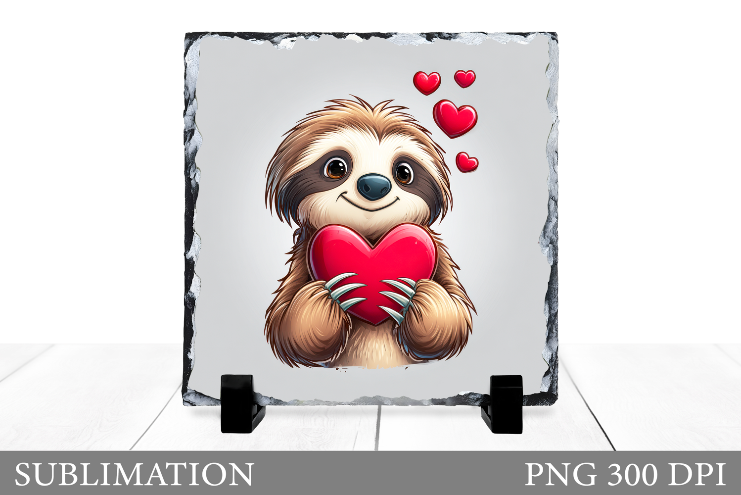 Valentines Slate Design. Valentines Sloth Sublimation example image 1