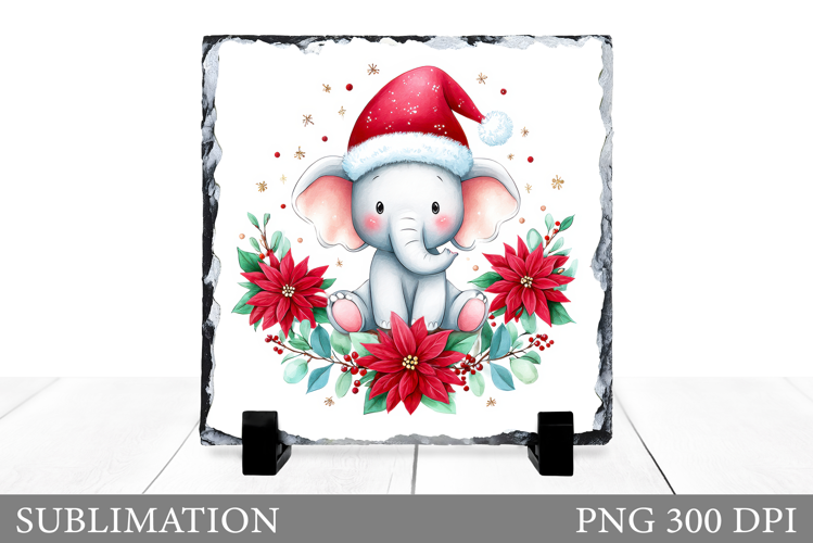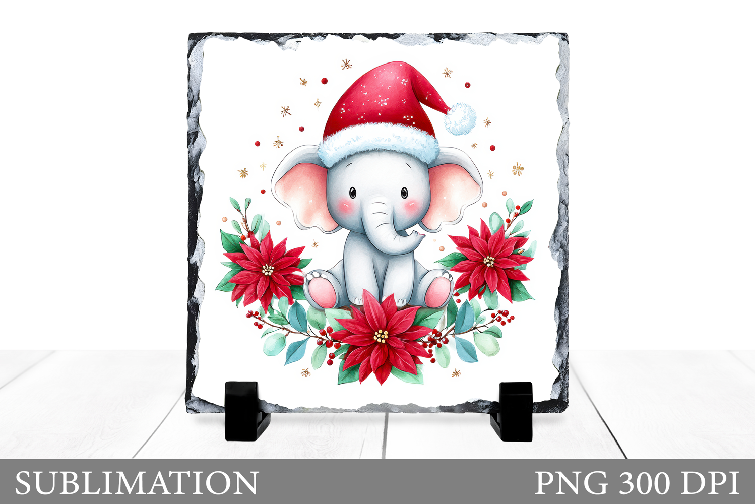 Cute Elephant Sublimation. Christmas Elephant Slate Design example image 1