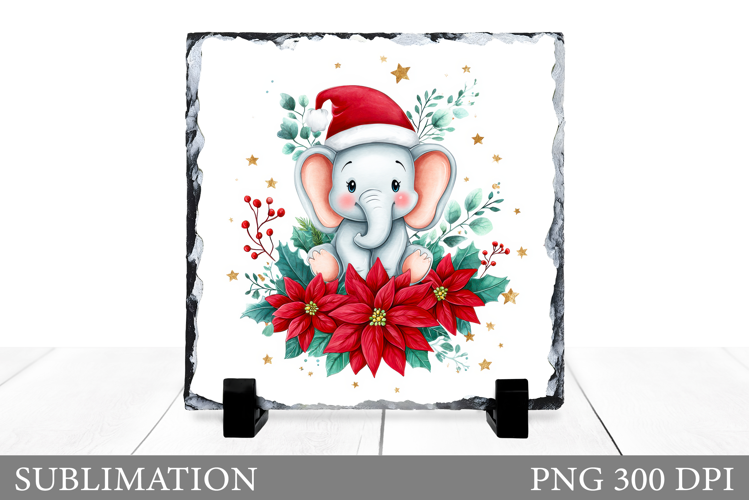 Cute Elephant Sublimation. Christmas Elephant Slate Design example image 1