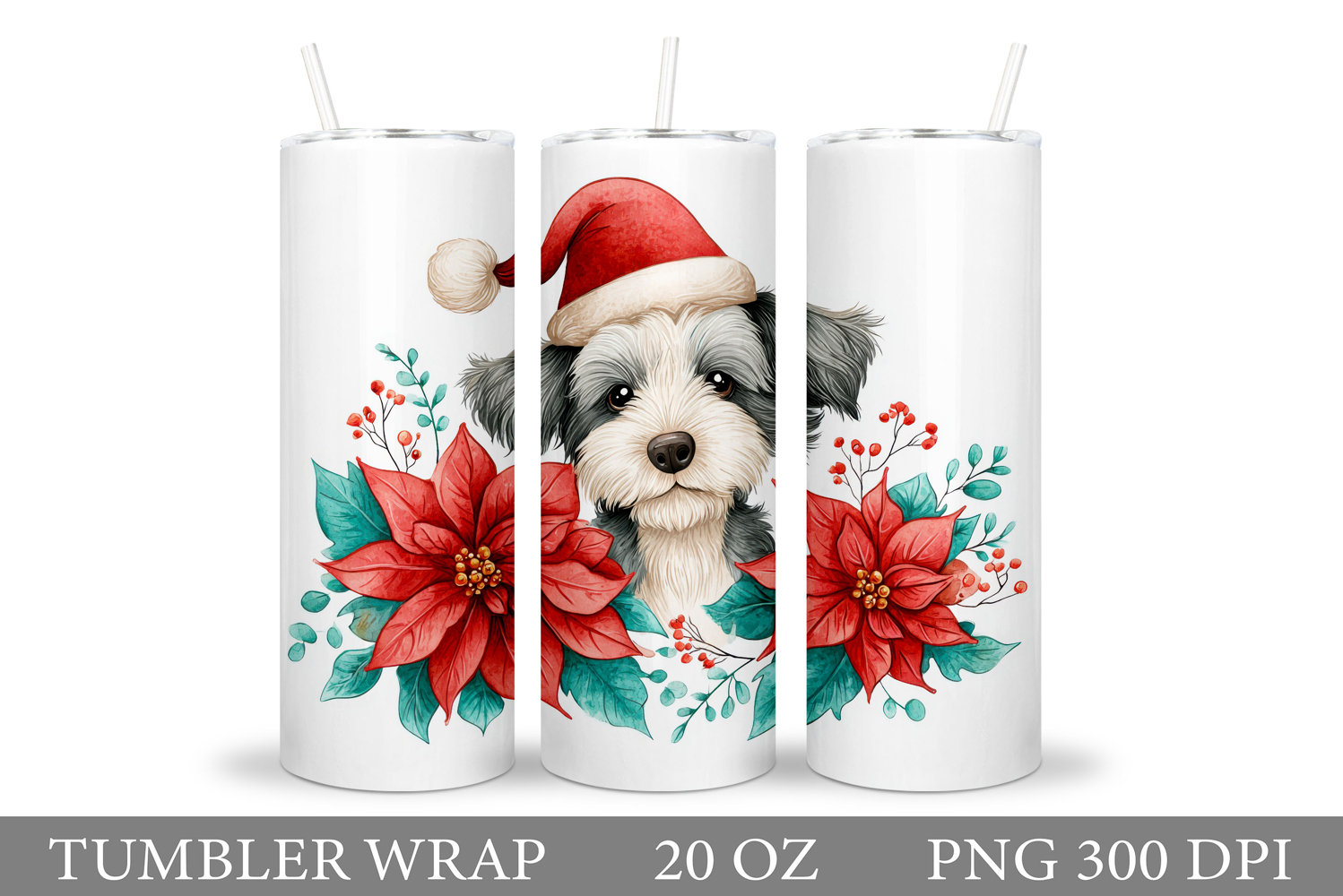 Christmas Dog Tumbler Design. Christmas Tumbler Sublimation example image 1