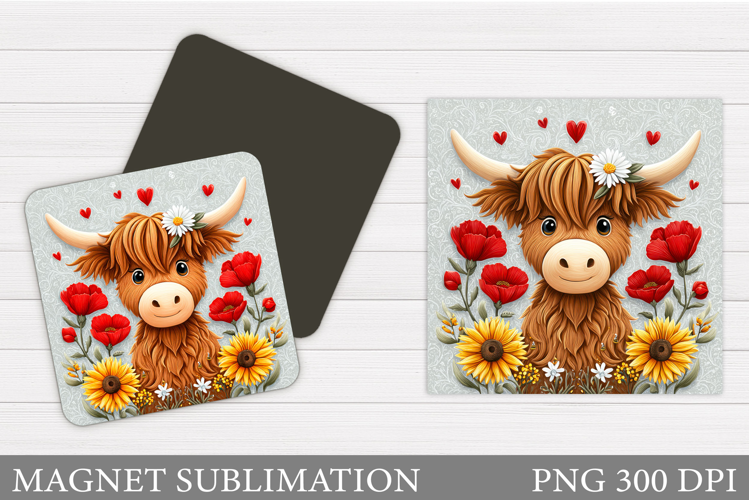 Highland Cow Sublimation Cow Magnet Flowers Magnet Cow Magnet Sublimation Cow Square Magnet Cow Magnet Template Cute Cow Magnet Cow Flowers Magnet Highland Cow Magnet Fall Cow Magnet