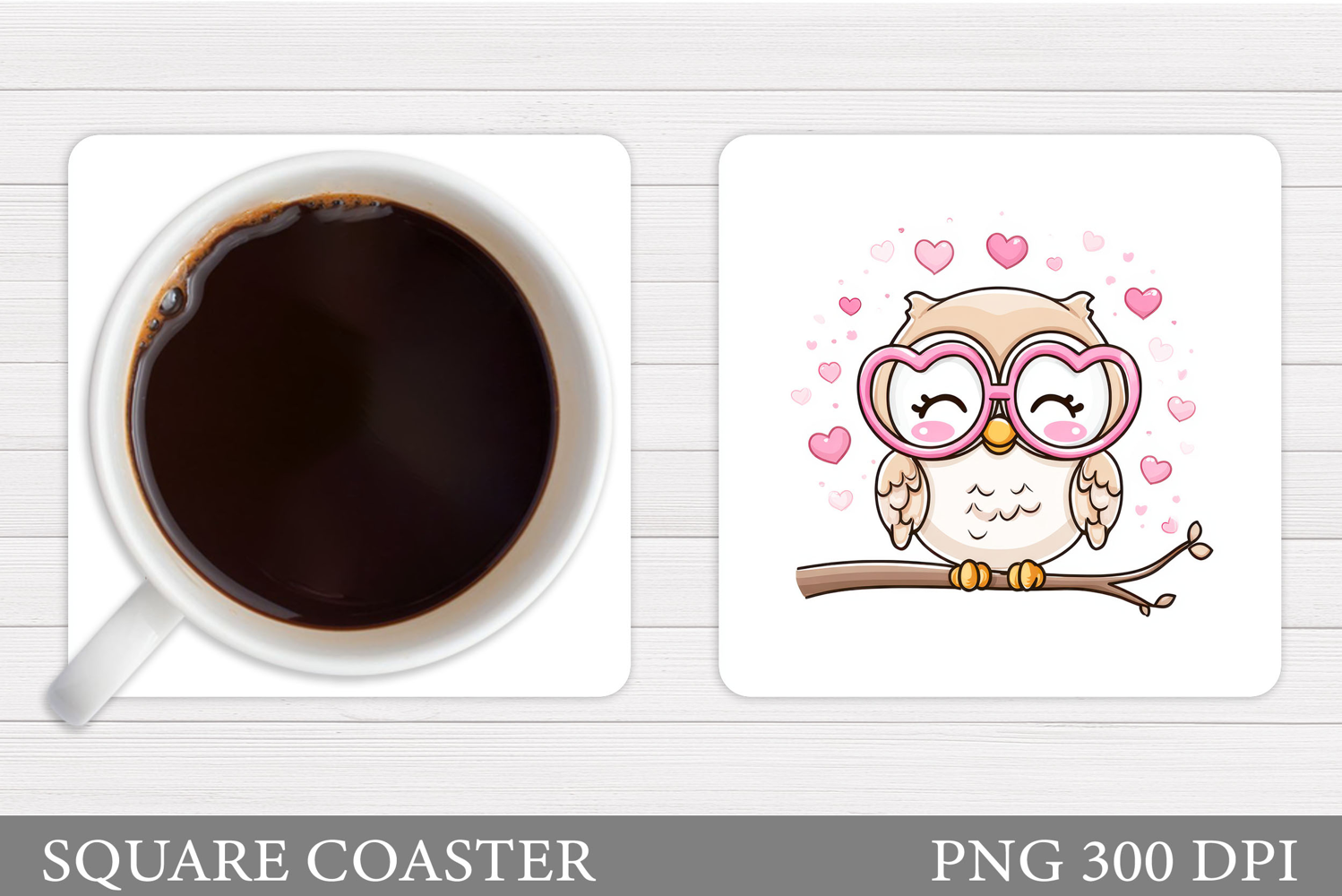 Similar Design Products to Cute Owl Coaster Design. Valentines Owl Coaster Sublimation