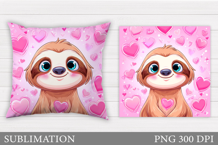 Valentines Sloth Pillow Design. Valentine Pillow Sublimation example image 1