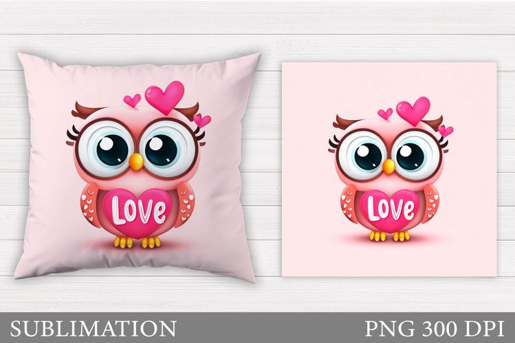Valentines Owl Pillow Design. Valentine Pillow Sublimation example image 1