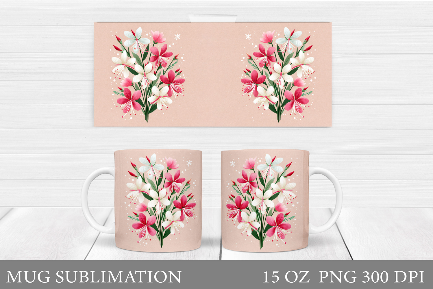 Wildflowers Mug Sublimation. Flowers Mug Wrap Design
