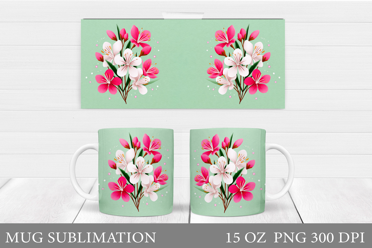 Floral Mug Wrap Design. Flowers Mug Sublimation