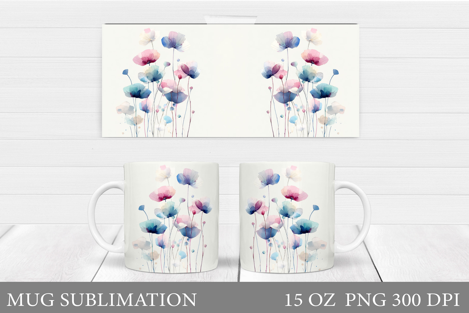 Wildflowers Mug Sublimation. Flowers Mug Wrap Design