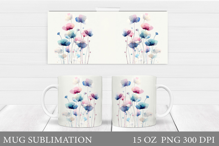 Wildflowers Mug Sublimation. Flowers Mug Wrap Design example image 1