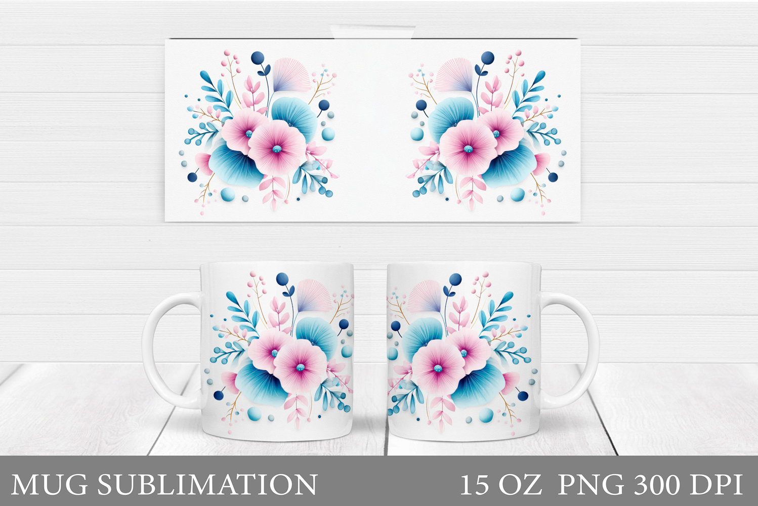 Floral Mug Sublimation. Flowers Mug Wrap Design