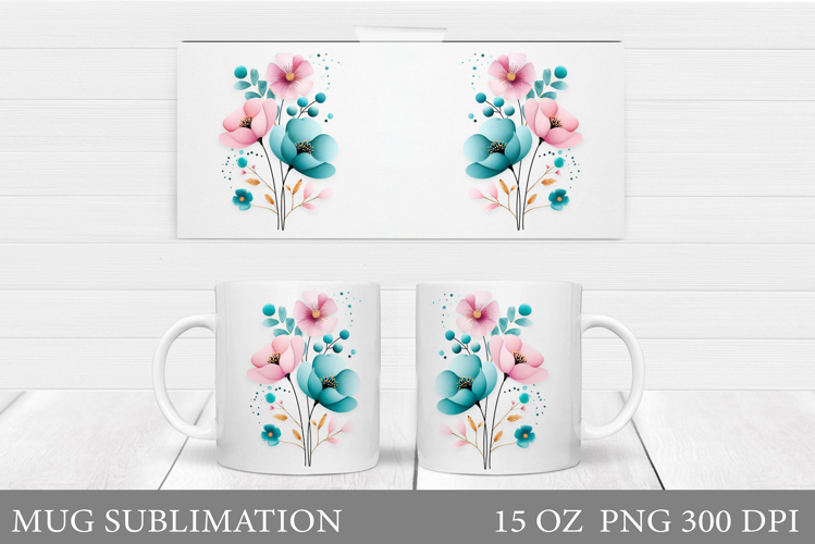 Floral Mug Sublimation. Flowers Mug Wrap Design