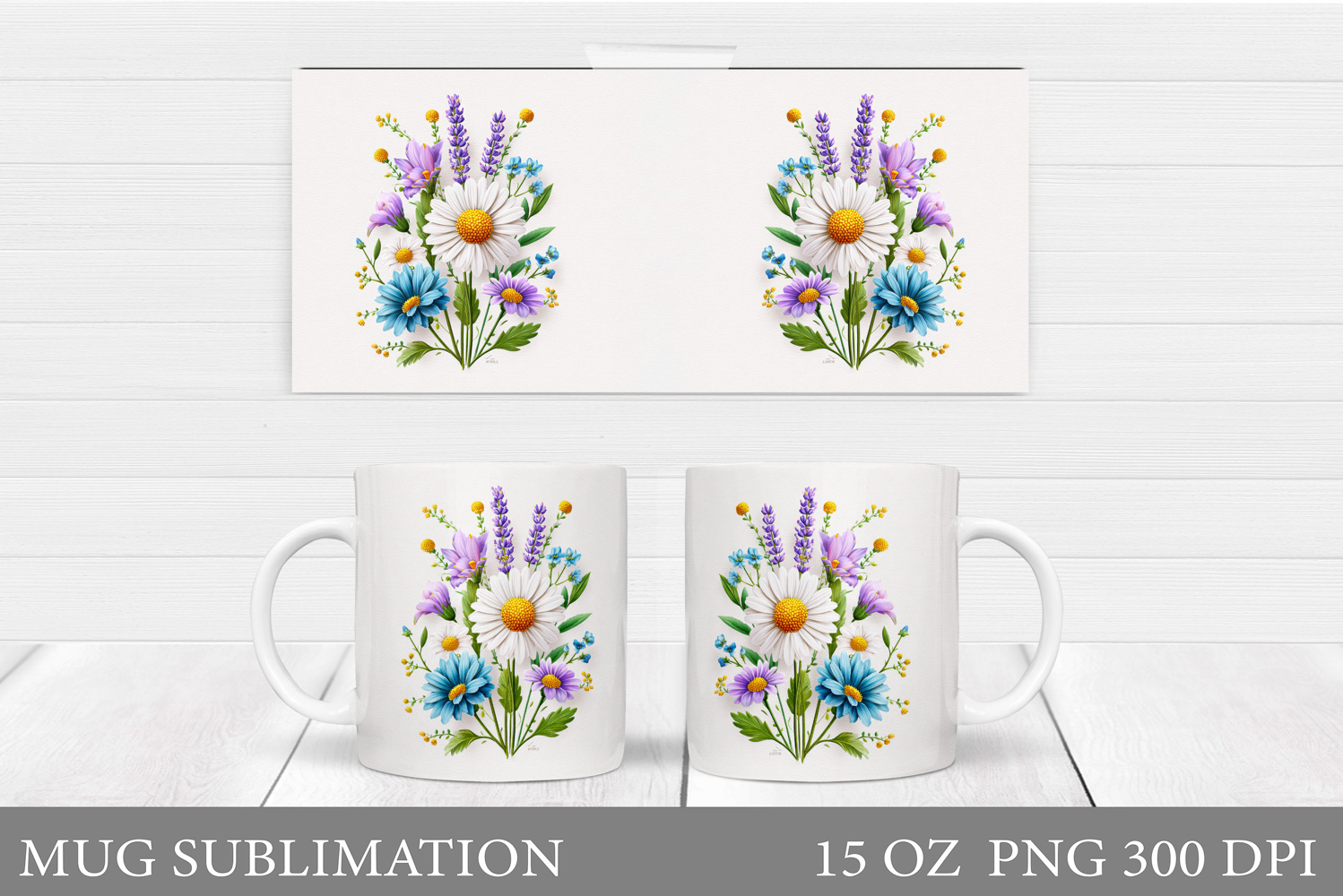 Flowers Mug Sublimation. Floral Mug Wrap Design