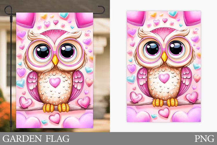 Valentines Owl Garden Flag. Valentines Garden Flag Design