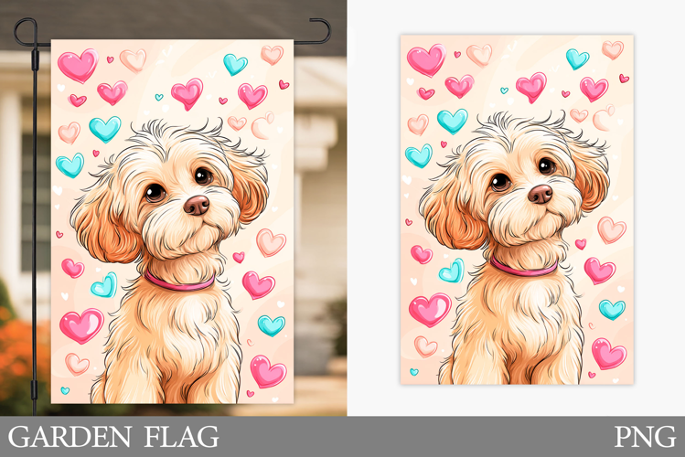 Valentines Dog Garden Flag. Valentines Garden Flag Design