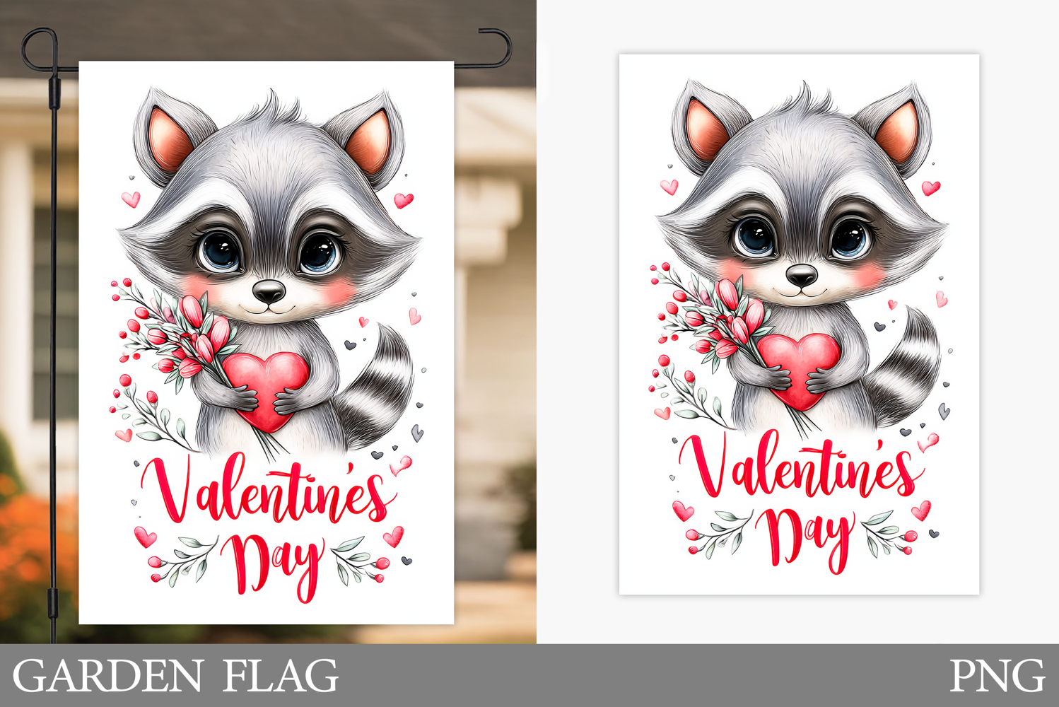 Valentines Raccoon Garden Flag. Valentine Garden Flag Design