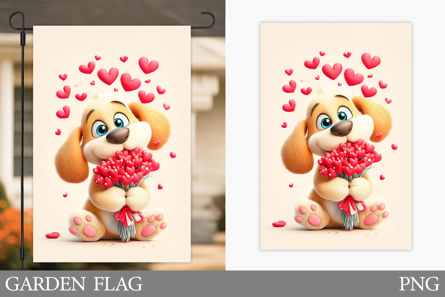 Valentines Dog Garden Flag. Valentines Garden Flag Design