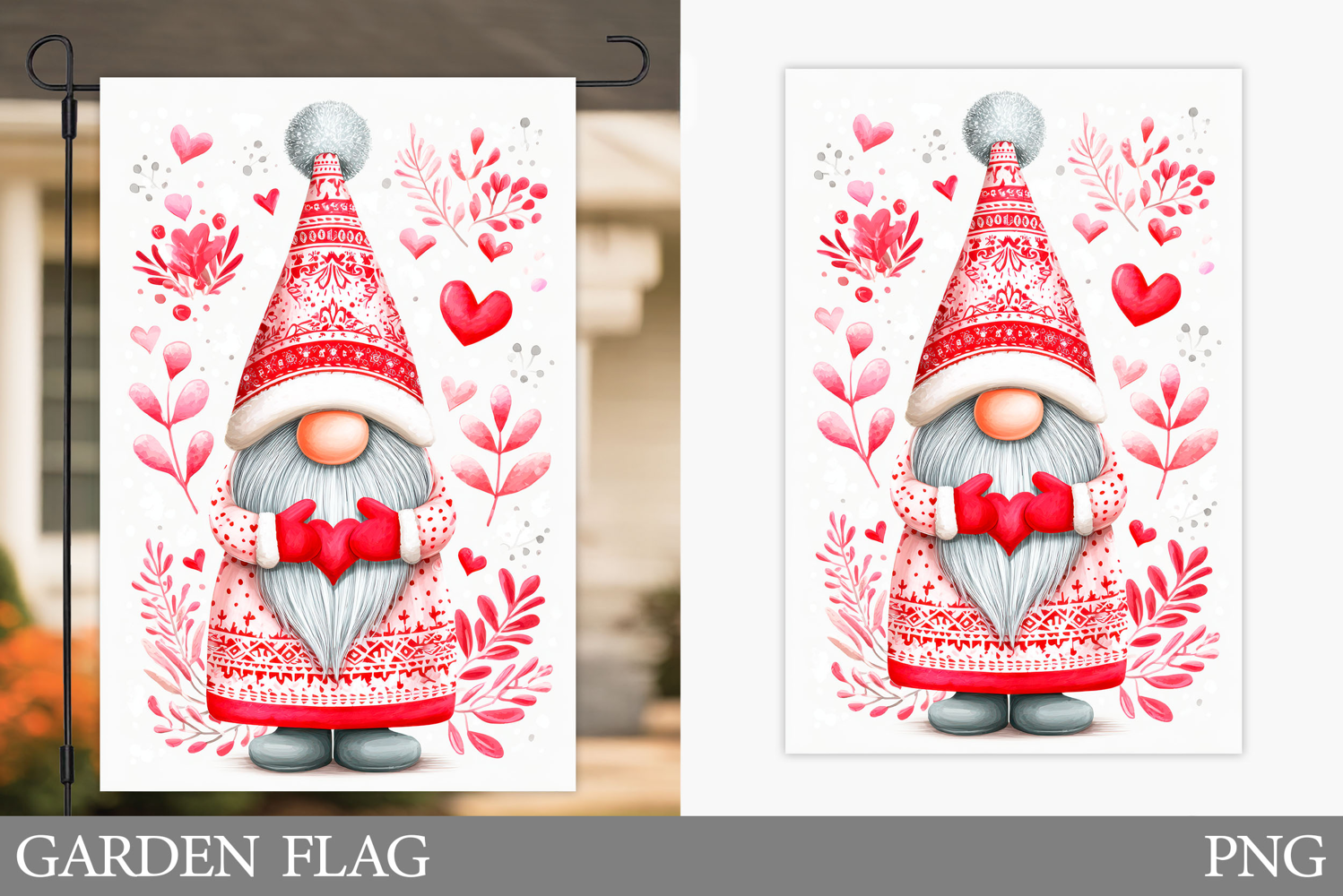 Valentines Gnome Garden Flag. Valentines Garden Flag Design