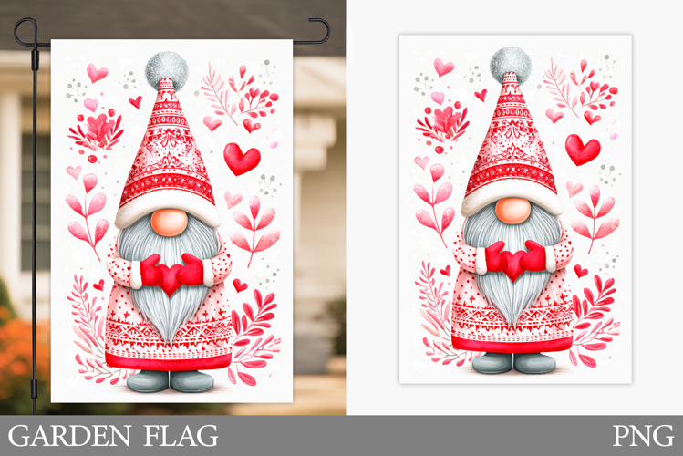 Valentines Gnome Garden Flag. Valentines Garden Flag Design example image 1