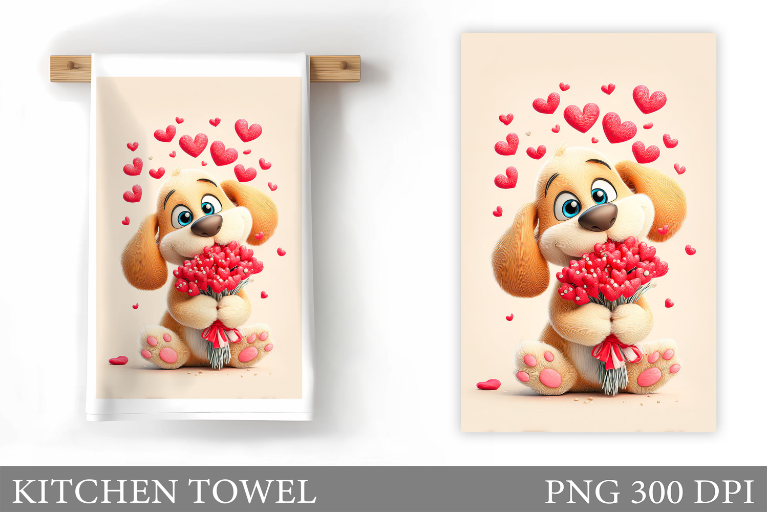 Valentines Dog Kitchen Towel. Valentine Kitchen Towel Design example image 1