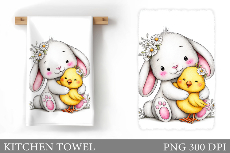 Cute Bunny Chick Kitchen Towel. Cute Bunny Sublimation