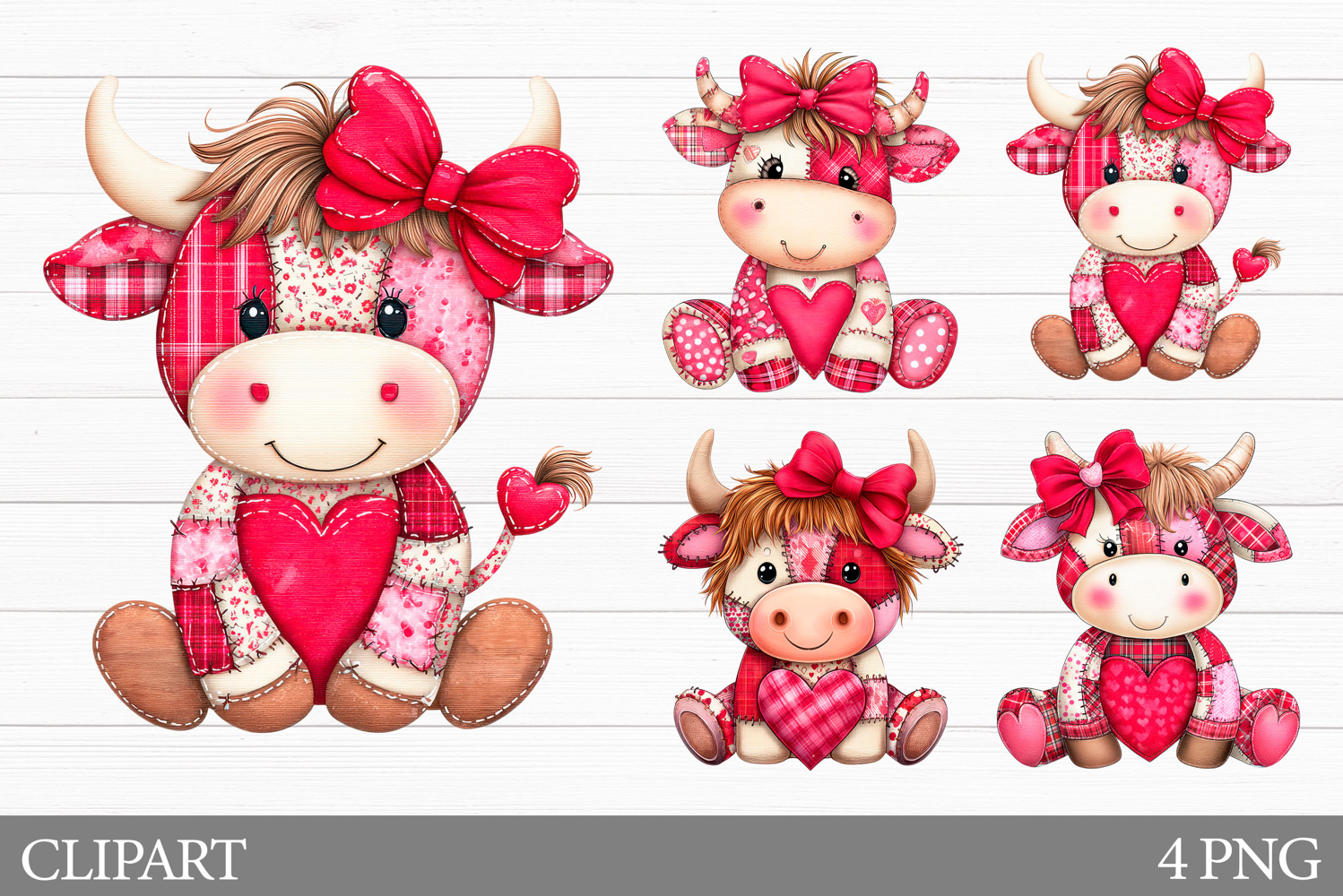 Patchwork Cow Clipart. Valentines Cow Sublimation