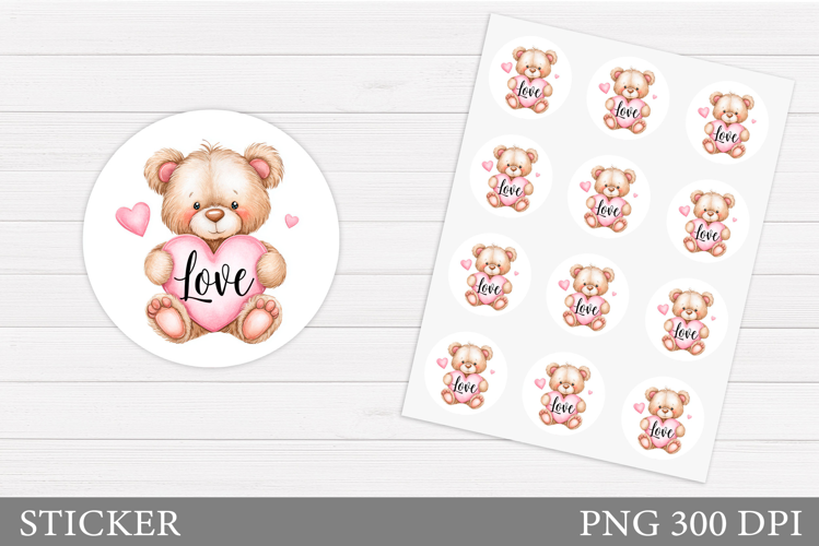 Valentines Bear Sticker Printable. Valentines Sticker Design example image 1