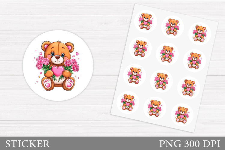 Valentines Bear Sticker Printable. Valentines Sticker Design example image 1