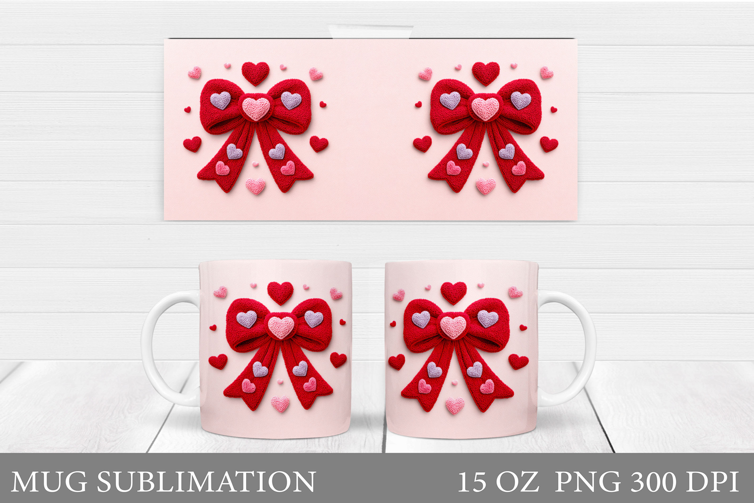 Valentines Bow Mug Sublimation. Valentines Mug Wrap Design