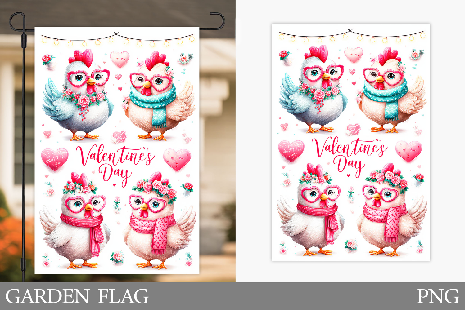 Valentines Chicken Garden Flag. Valentines Garden Flag example image 1