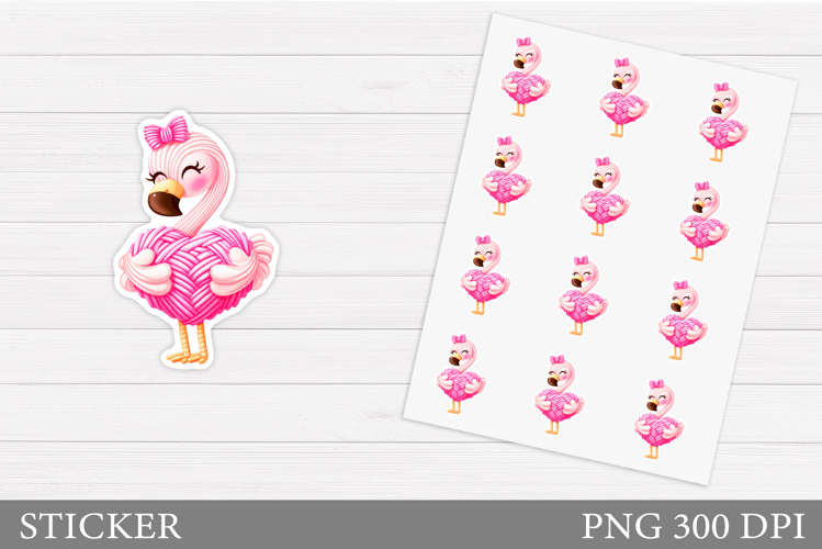 Yarn Flamingo Sticker Design. Valentines Flamingo Sticker example image 1