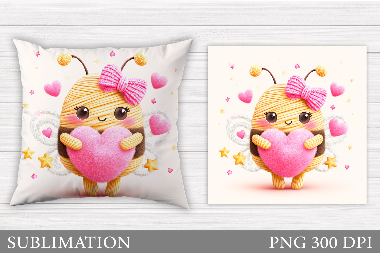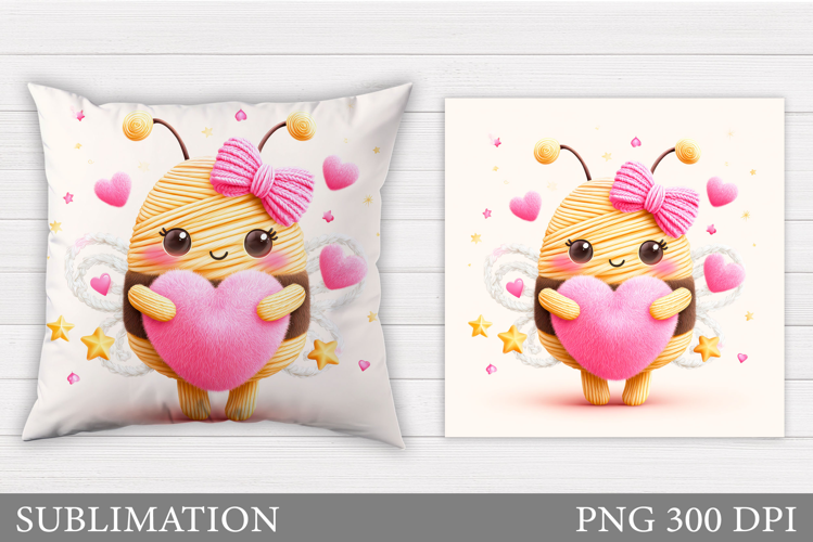 Valentines Bee Pillow Design. Valentines Pillow Sublimation