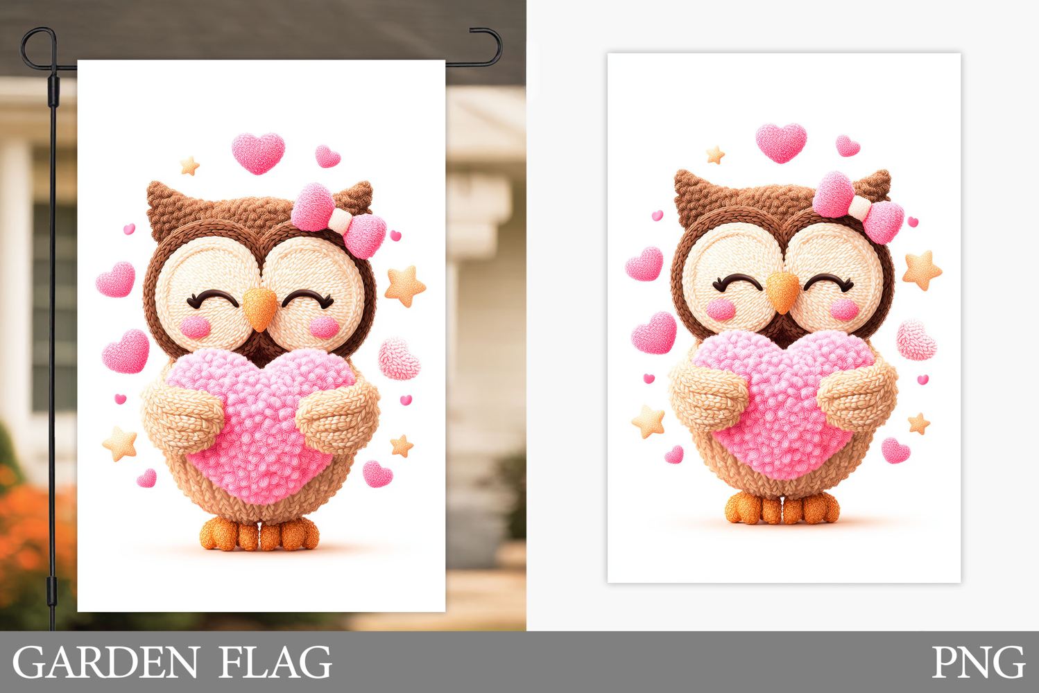 Valentines Owl Garden Flag. Valentines Garden Flag Design