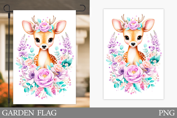 Cute Deer Garden Flag Design. Deer Flowers Garden Flag