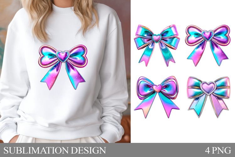 Iridescent Bow T-Shirt Design. Valentines Bow Sublimation example image 1