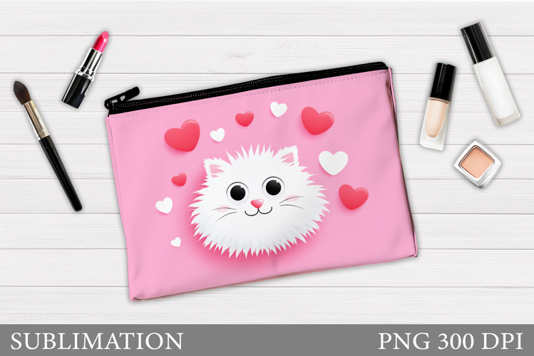 Valentines Cat Cosmetics Bag. Valentines Makeup Bag Design