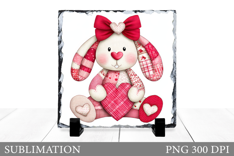 Patchwork Bunny Sublimation. Valentines Bunny Slate Design